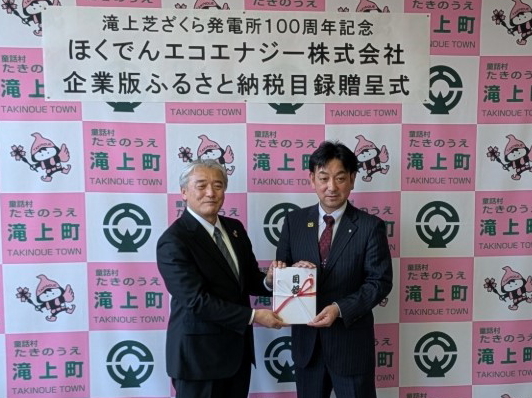 当発電所が長きにわたり、安定した運転を続けることができたのは、滝上町の皆さまの深いご理解と温かいご協力のおかげであり、その感謝の気持ちとして、企業版ふるさと納税として寄付させていただきました。